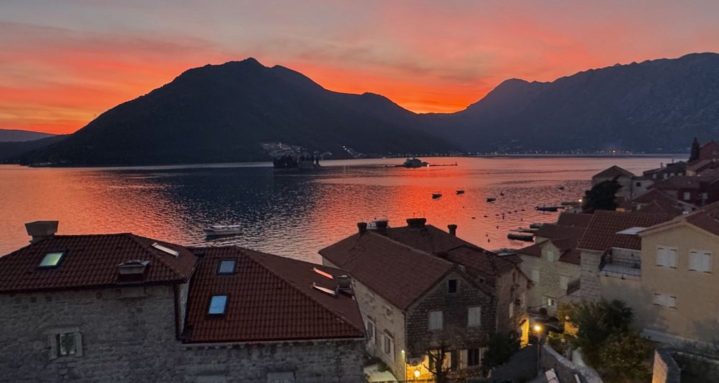 Perched above the Bay of Kotor, standing on my Airbnb’s ancient terrace above red tiled roofs, I watch in awe as the sunset hues splash over the calm waters of Perast, in view of the islets of St. George and Our Lady of the Rocks. The stillness eases my mind as only the sounds of church bells and birds can be heard. If I have found the best place in Europe to get away from it all, it is here – in this tiny idyllic seaside town of 400 people – with narrow stone alleyways stuffed with palaces, stunning Baroque architecture, and over a dozen crumbling romantic churches. Just down below, fresh fish and pasta await, without a reservation. Mesmerized by this peaceful town on my last trip to the Balkans, I knew I had to find my way back to this Adriatic jewel, if only for a night.