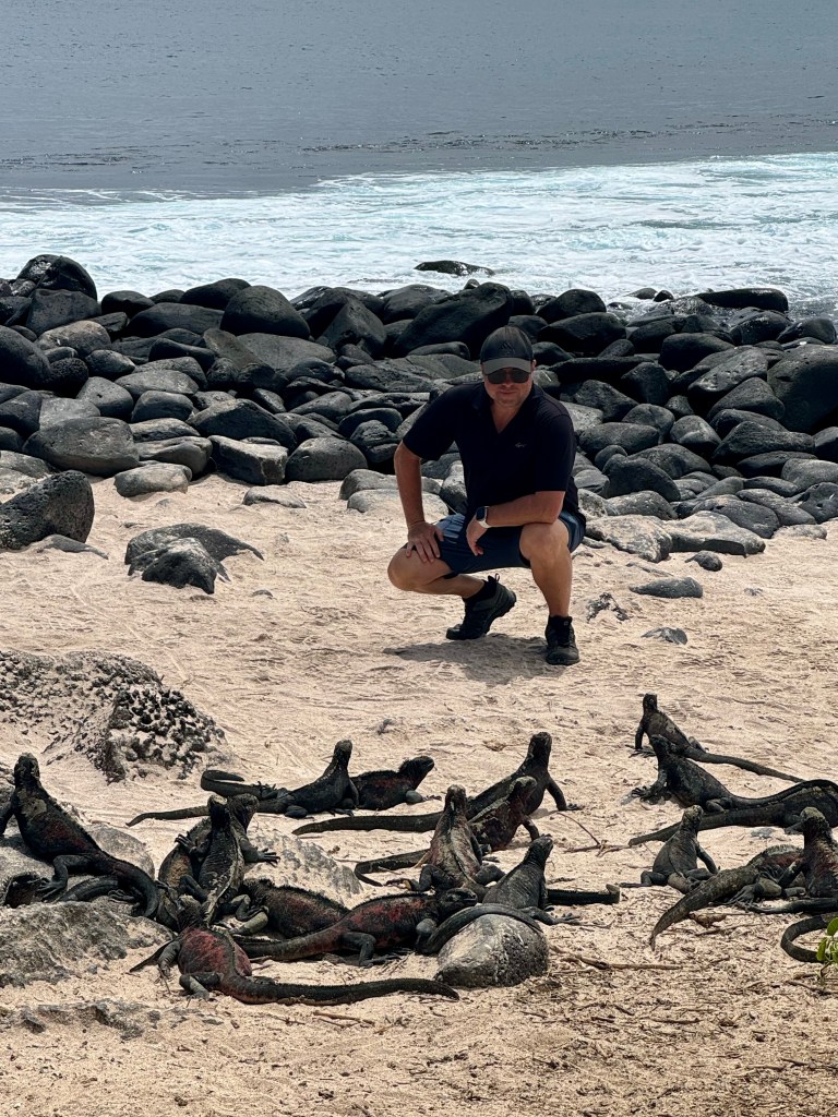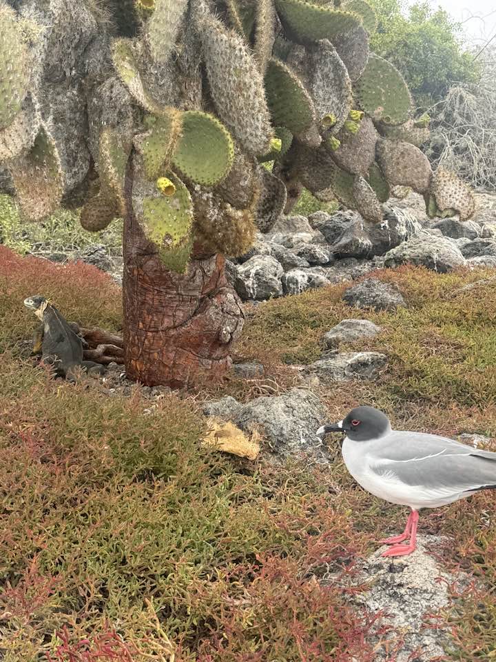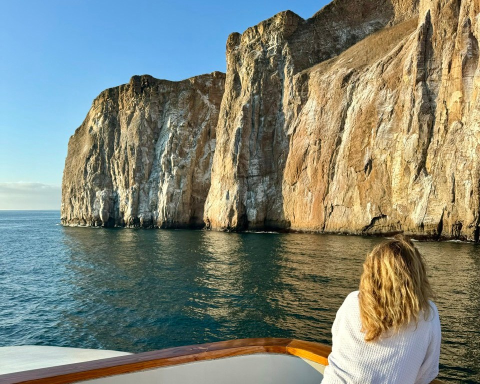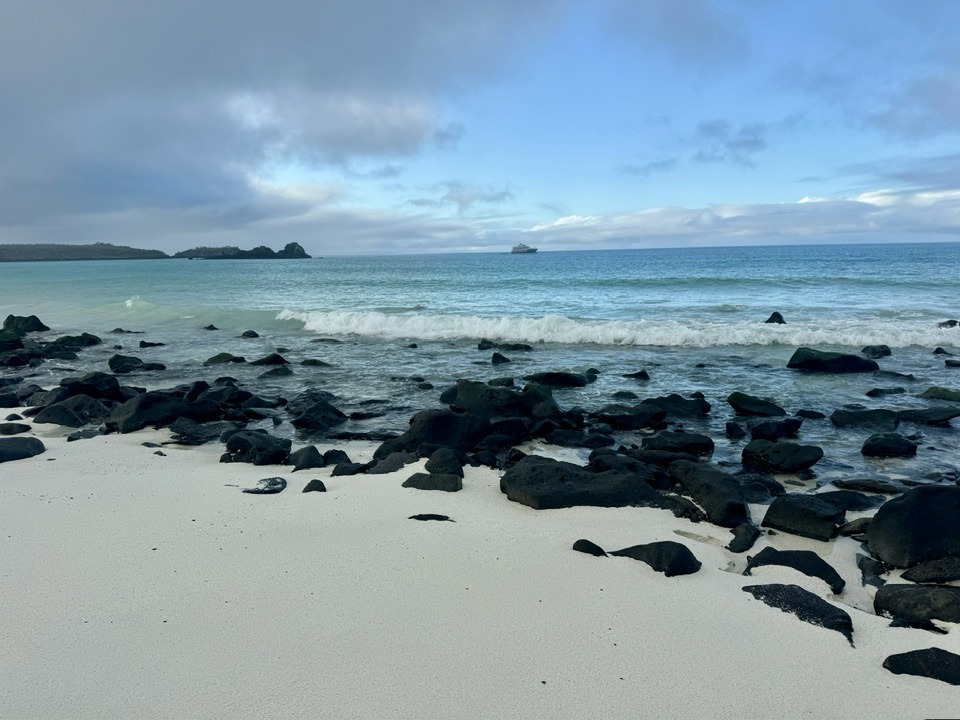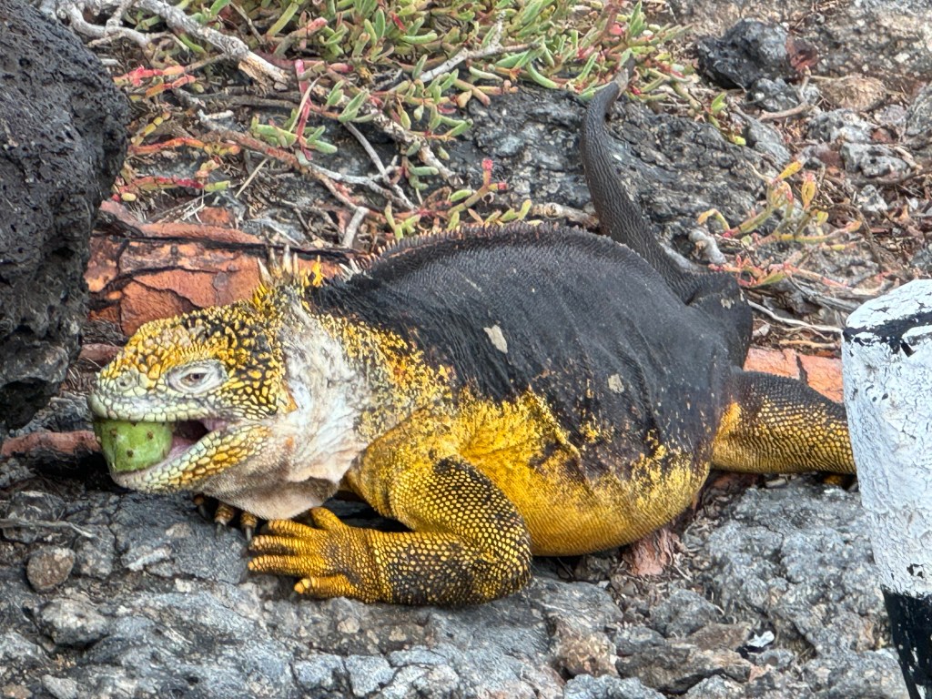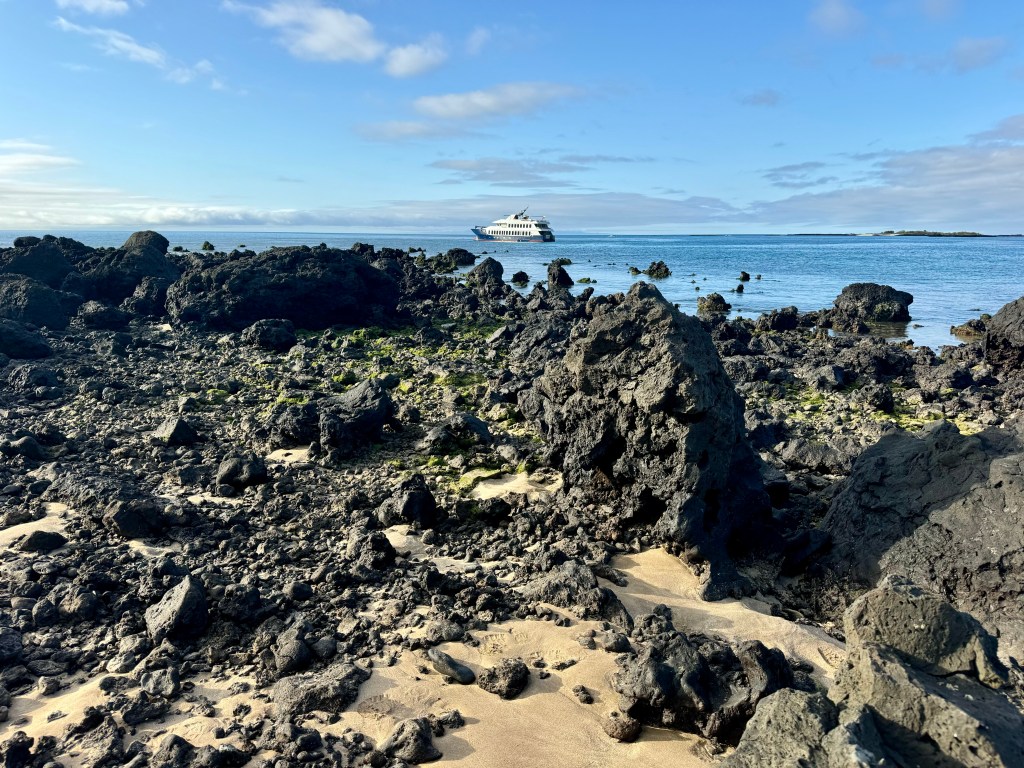 On previous islands, we snorkeled with schools of tropical fish, numerous sea turtles, sea lions of all sizes, a Galapagos shark, and a marble sting ray laying on the ocean floor with a tail bigger than my body. Vibrant-hued parrot fish in colors I’ve never seen before and puffer fish the size of my forearm dazzled in shades of banana yellow, teal, and black with white polka dots.