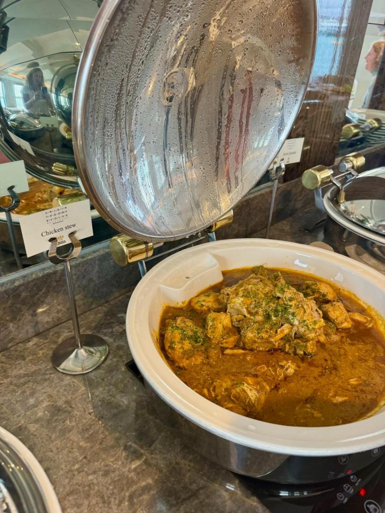 An impressive assortment of new menu items are presented for breakfast and lunch in a self-serve gourmet buffet, which typically involves a selection of salads, breads, and entrées. Dinner may include a French flair, or a nod toward Mexican cuisine, but always features local Ecuadorian dishes. We enjoyed trying entrées like “Encebollado” (fish stew), Prawn Bisque, Tournedos of Beef, Trout Carpaccio, Spinach and Confit Garlic Stuffed Ravioli, Ecuadorian Plantain Mash, Eggplant Parmesan with Blue Cheese Mousse, Mahi Mahi with Pistachio Crust, and Sea Bass in a seafood sauce with sauteed veggies. Decadent desserts wowed us too satisfying every sweet tooth: Chocolate Chip Banana Bread, Bananas foster, Mille-feuille, Apple Crumble, Crème Brule, Lemon Cheesecake, and more.