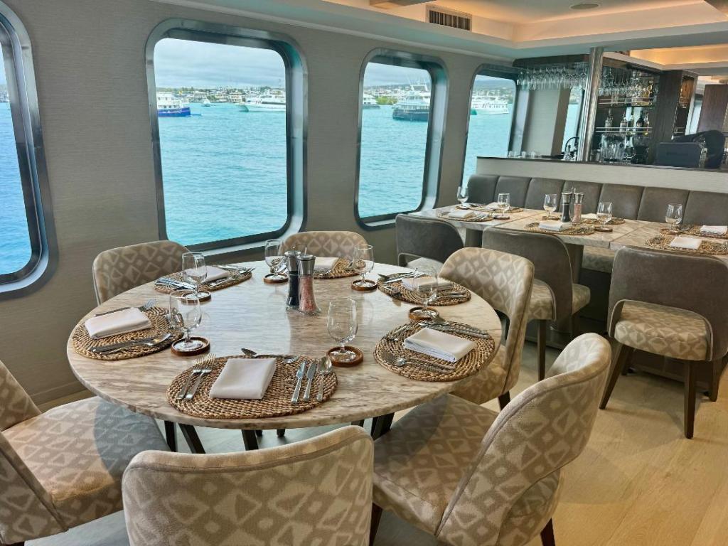 Moments of joy occurred regularly on this island odyssey. After a daily rooftop sunset with a clink of regional wine, Galapagos Summer IPA, or specialty cocktail, we settled in daily for a multicourse dinner. Chef Cristhian Murrieta – formally trained in Peru and recruited from one of the top restaurants in Guayaquil, Ecuador – presents five-star gastronomy experiences as nightly culinary journeys of Amuse Bouche, Appetizer, Soup, Main Course, and Dessert. Don’t expect to find endemic species on the menu but a healthy dose of local seafood, such as Galapagos prawns, lobster, octopus, and fish.
