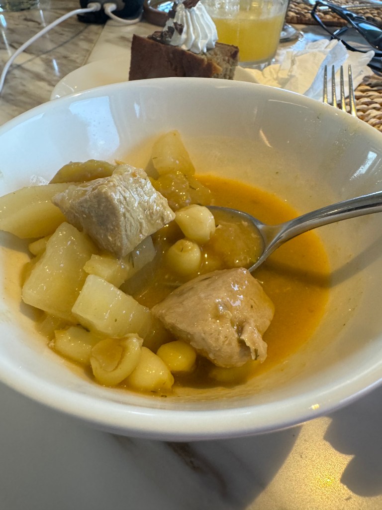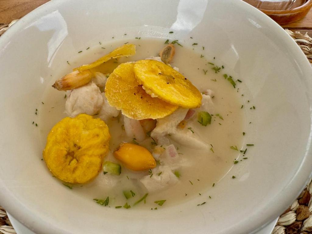 While we often saw Bolon de Verde (small fried plantain dumplings filled with cheese, herbs, and spices) presented in different ways, there are many traditional delicacies that feature local flavors. One must-try Ecuadorian dish is Encebollado, a thick fish-based soup served for breakfast, lunch or dinner. The soup typically features albacore tuna with boiled cassava, onions, tomatoes, peppers, and a garnish of lime juice, chilis, and cilantro. The hearty bowl is often accompanied with bread, plantains, or banana chips.