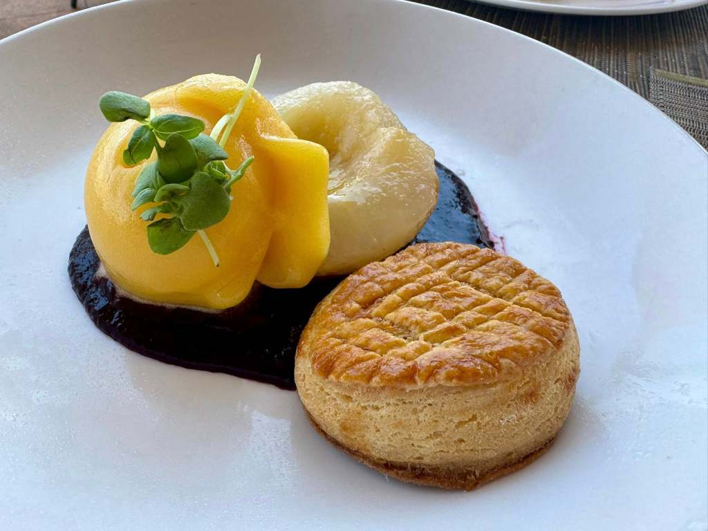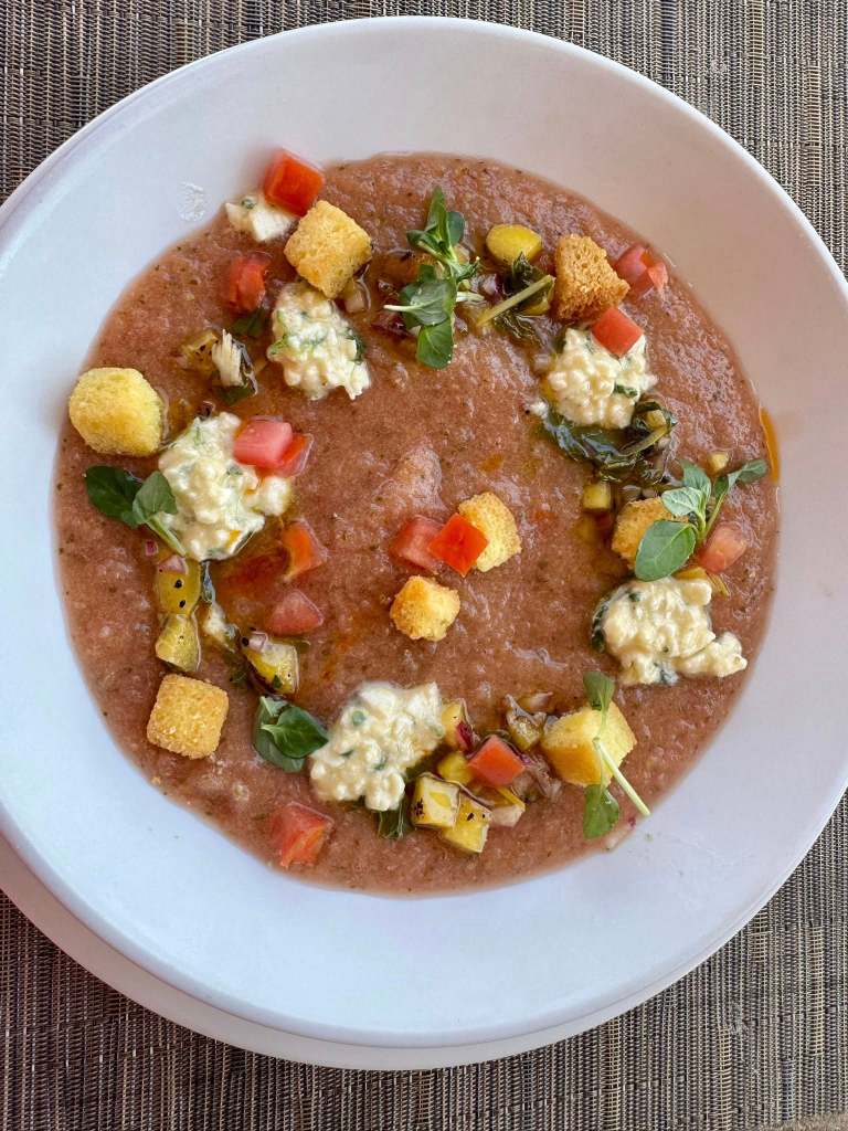 Thanks to French Chef Herve Glin, formerly from The Parker Palm Springs, be WOW’d by the uber fresh fare like refreshing Gazpacho blended with peach and tomato with a nice spice kick, enhanced with dabs of creamy burrata and chili oil. The Heirloom Tomato Carpaccio arrives like a piece of art with iceberg Wedge, Persian cucumbers, and a dash of pumpkins seeds and stracciatella cheese.