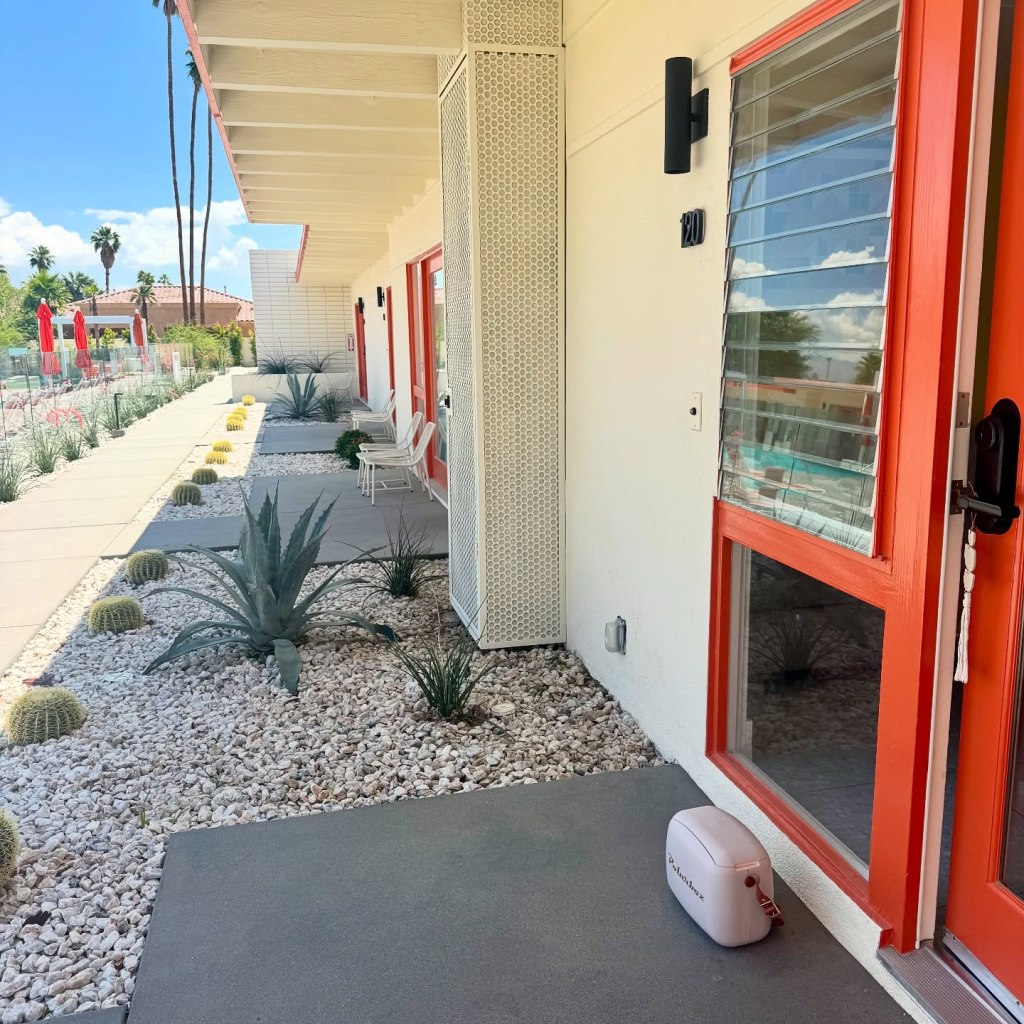 Right outside your door, take a pool dip, a jacuzzi soak under the stars, or eat delivered breakfast bites on chairs outside your room. Complimentary bikes are available to explore the area too. It’s easy to unwind and get a peaceful night’s rest in this desert sanctuary. Use this location as a centrally located desert launch pad to explore the culinary scene of Greater Palm Springs.