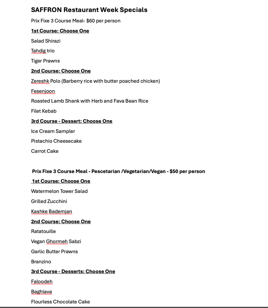Dive into 2,500-year-old recipes made with modern techniques. Check out Saffron’s menu with special offers during Restaurant Week. https://www.saffronps.com/menu. Just 6 months old, Chef Sev excites guests with Persian flavors in Palm Springs.