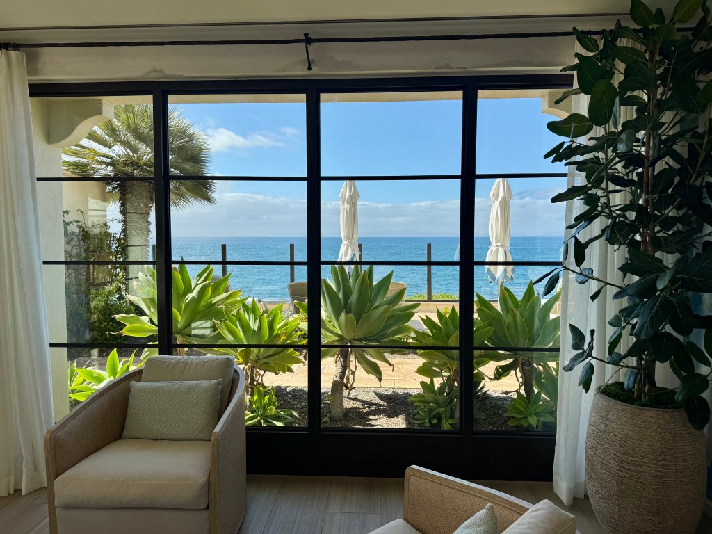 While I have been coming to Terranea since its opening in 2009, I have always stayed in a studio suite overlooking the ocean. Coming here from Los Angeles and Malibu feels worlds away from chaos, like a true getaway. This May was my first experience staying on the other side of the property, in an oceanfront casita, which felt like a small house – with outdoor terrace, living room, kitchen, and primary bedroom featuring mesmerizing ocean views from every angle. The land here feels very private and a windy path along the ocean takes you to the pool, the Spa, and Nelson’s, one of eight dining venues that showcases the farm-to-Terranea culinary philosophy of utilizing local and seasonal ingredients. Terranea’s bountiful land boasts herb and vegetable gardens, lemon groves, and even their own harvested salt. Nelson’s casual restaurant sits on the cliffside, perfect for sunset paired with a hearty lobster roll, clam chowder, mussels with sausage, and a seared ahi tun sandwich. You might just spot a whale or dolphins too! In the past I have enjoyed Terranea by hiking around the peninsula, kayaking off the wildlife rich location, dining at hilltop Mar’Sel, and working out with rock weights on the shoreline.