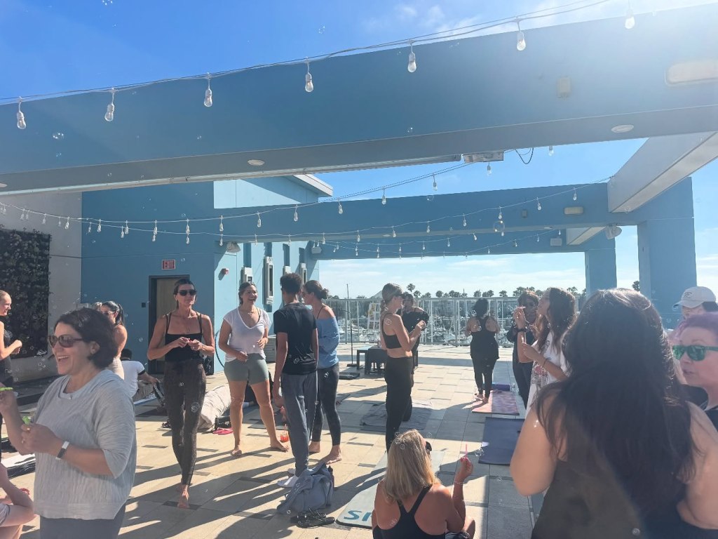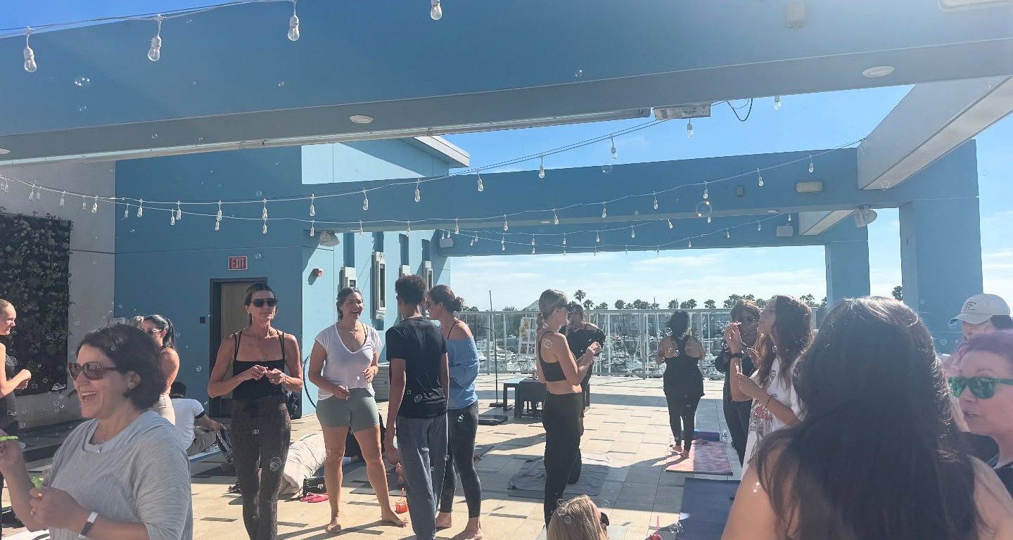This past Sunday (July 27) weekend we experienced a beautiful rooftop yoga session with instructor Jeri Reeder who led us through a playful Yin Yoga session with tarot, bubbles, and hula hoop – connecting to ourselves and others atop this special South Bay location. As the sun set, California’s coastal salty cool air felt refreshing.
