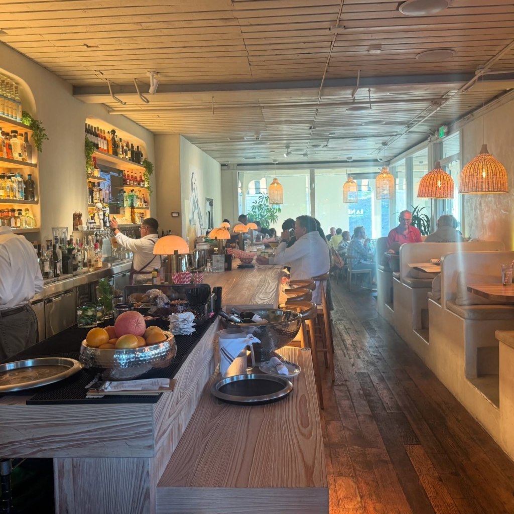 The bright, cheery restaurant and bar, located in Point Dume Village and adorned with rattan hanging lamps and cozy booths with large beige pillows, is where locals and visitors happily mingle – exchanging numbers, striking up conversations, and savoring coastal Mexican bites with traditional and modern flavors. People are excited to be out socializing and the Boho Baja vibe here embodies the Malibu spirit.