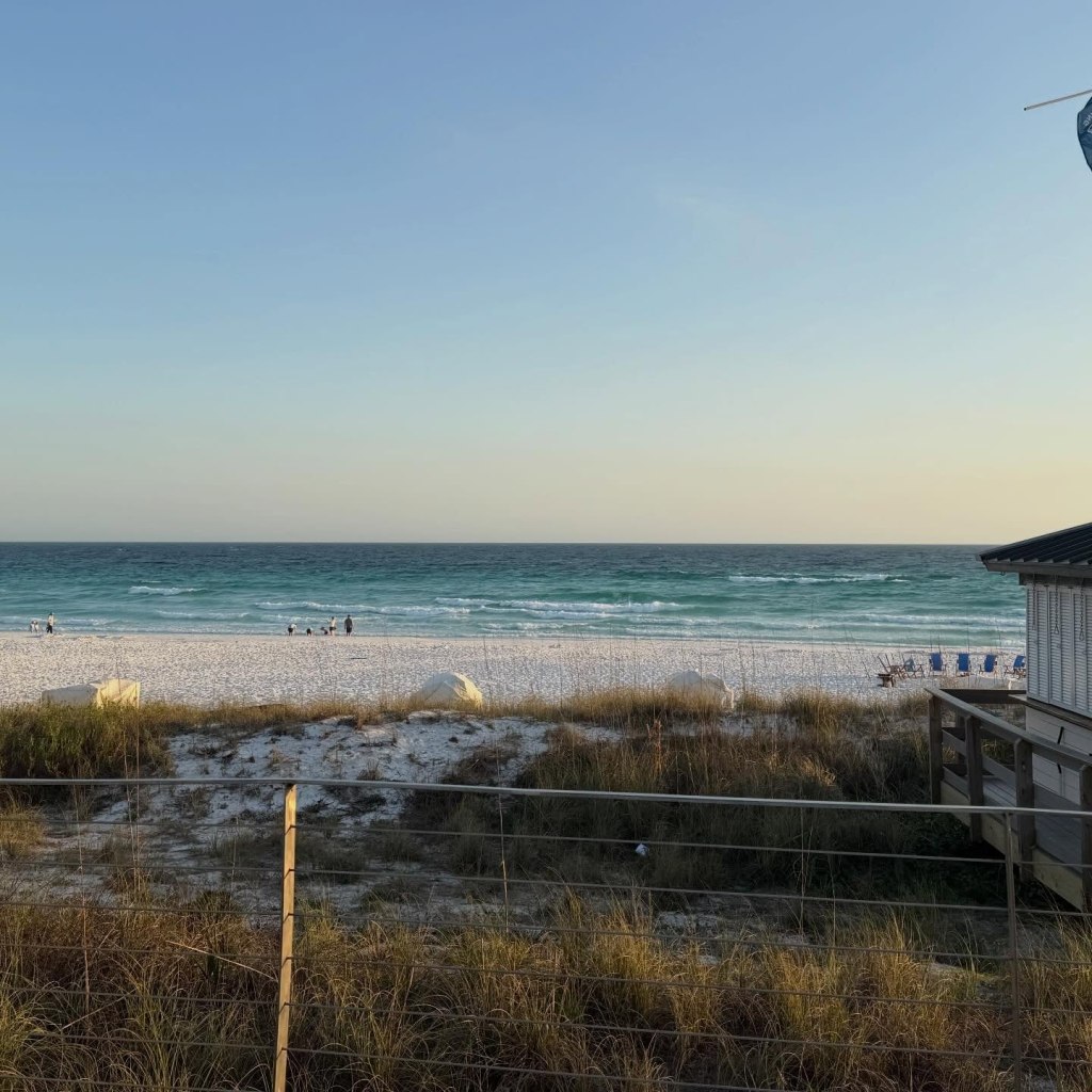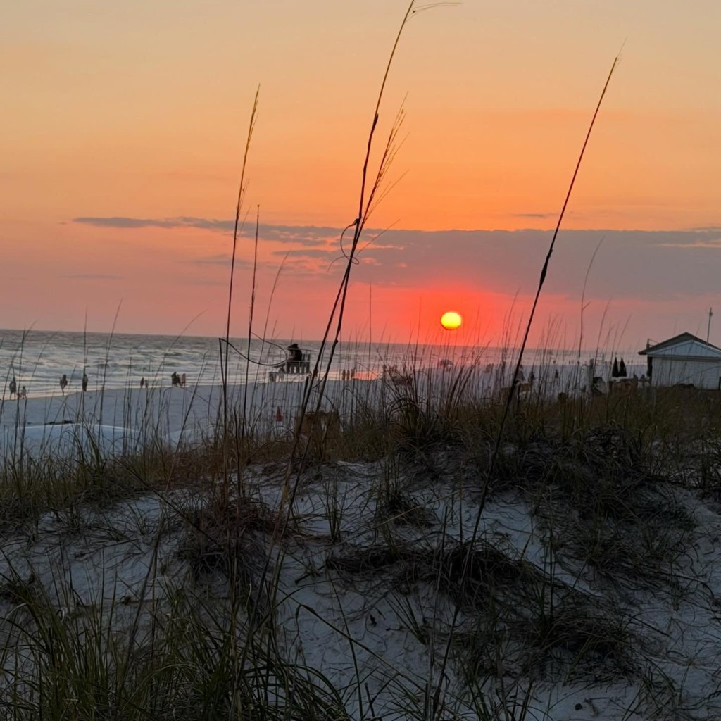 As I walk on higher dry white powdery sands, I notice the sand literally squeaks. Made from 97% pure, fine-grained quartz crystals, it has been polished into microscopic spheres, from the waves of the Gulf of Mexico, over thousands of years. This high pitch chirping is often called “singing sands.” I chuckle as a guy remarks how his feet look like powdered donuts, since the sand feels like sugar.