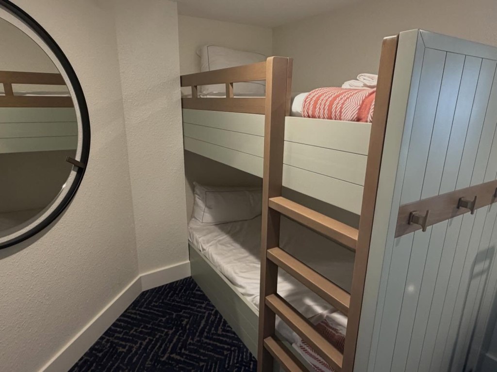 A perfect set up for families, my King bedroom with pullout couch donned in soft coastal pastel tones with a double vanity bathroom with separate areas for privacy. An adorable separate bunk bed area with TV for little ones is an ideal part of the Junior Suite, making traveling easy with a family, as there is also a mini fridge, coffee maker, blackout curtains, and desk/work area. Throughout my stay I was most impressed with the absolute quiet when I shut the door.