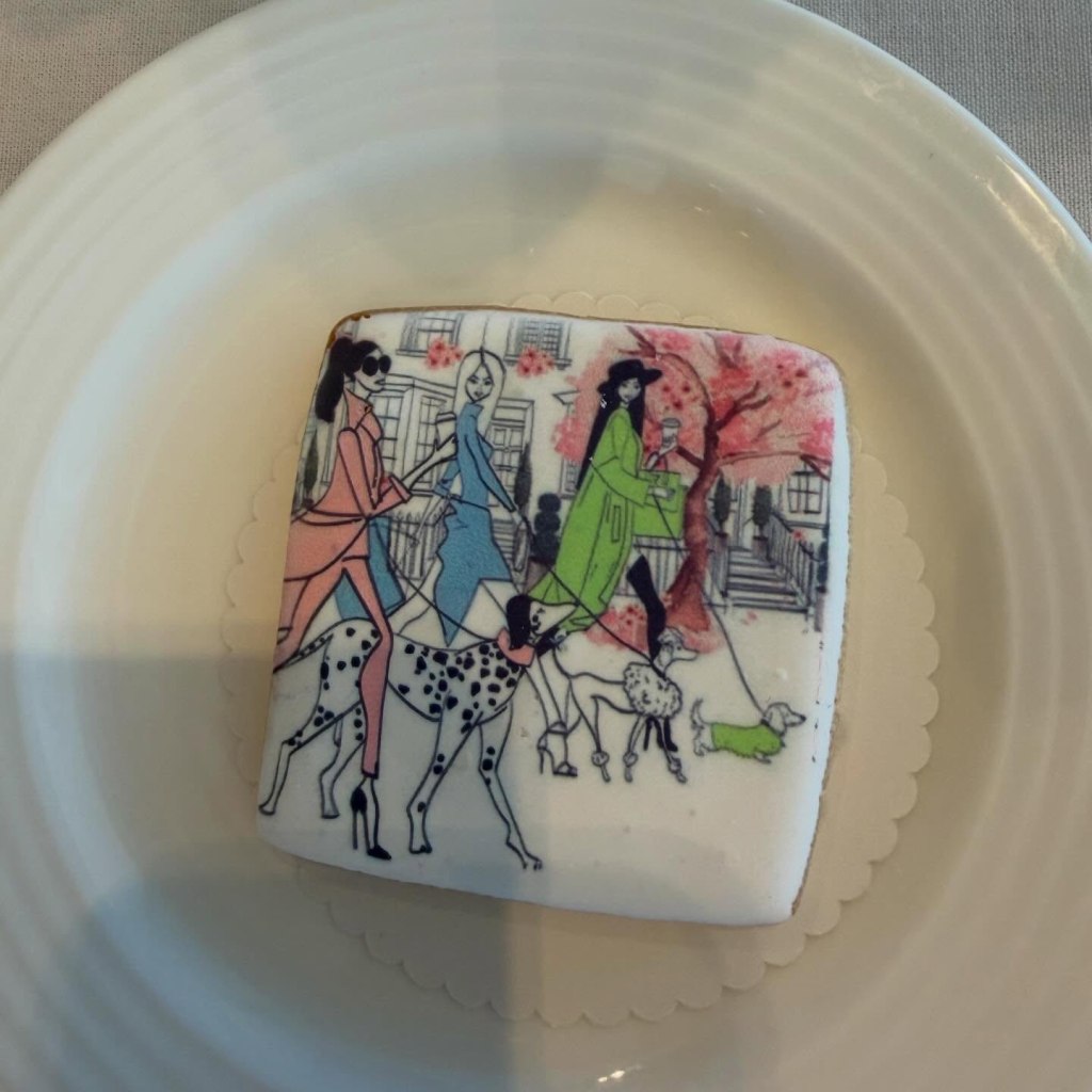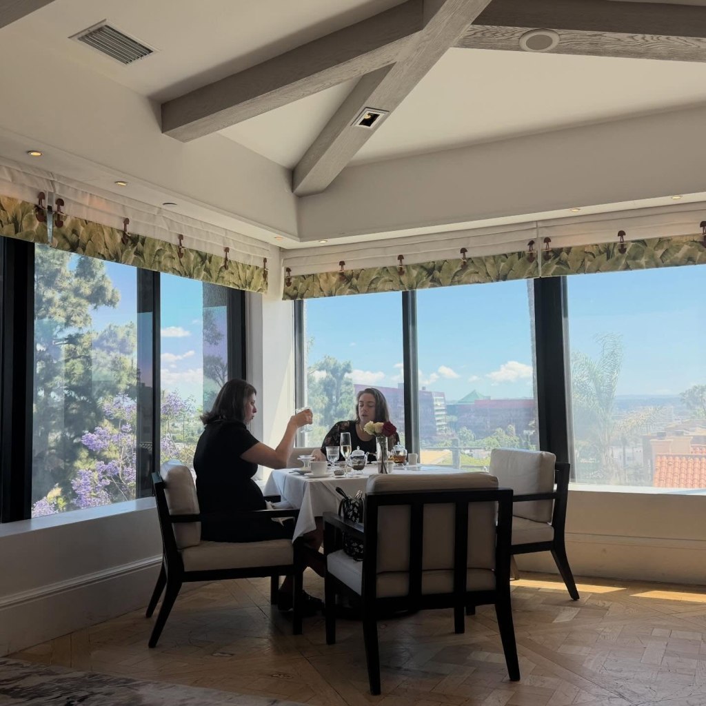 When you arrive to your white linen table with surrounding views of Los Angeles in the “Tea Room,” artful chic cookies greet each place serving, even a high heel Louboutin cookie with a red frosted sole and Devil Wears Prada inspired scenes painted on the cookies. While my husband chose Beauty Closet Botanical tea made with blend of rose, cocoa, and black tea, I chose a more traditional Lavender Earl Grey, which can also be made into a Misto, a light alternative to a full latte.